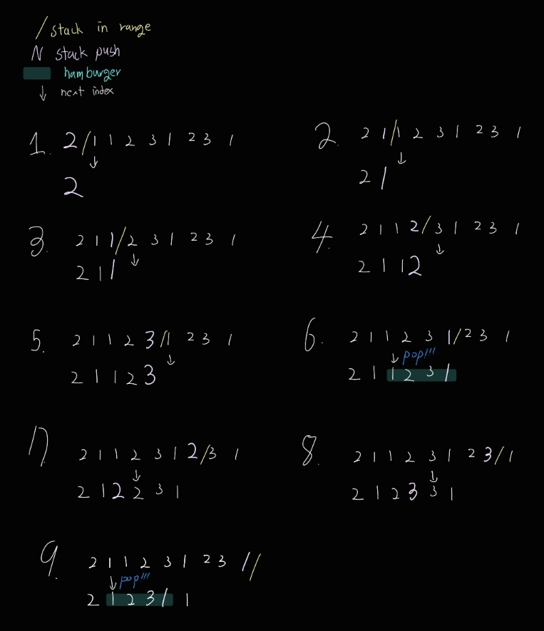 여기서는 stack을 pop 즉 꺼냈을때를 index로 변경하는 것으로 했다고 볼 수 있다.